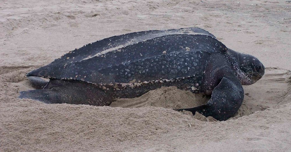 The leatherback sea turtle, sometimes is the largest of all living turtles and is the fourth-heaviest modern reptile behind three crocodilians.